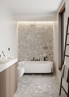 Cette maison contemporaine est un dialogue entre tradition et modernité. Ses façades en pierres, l'ancre profondément dans son territoire. AM-architectures propose des habitations entre émotions et fonctions, parfois aux lignes épurées. À l'intérieur de celle-ci, la minéralité est omniprésente, pourtant, loin d'être froid, l'espace rayonne d'une chaleur surprenante. Cette atmosphère naît des contrastes subtils des matières et des textiles doux qui adoucissent les surfaces dures, et une lumière naturelle qui sculpte les volumes. Un éclairage indirect crée une ambiance intime. Cette maison prouve qu'un design minéral peut être un havre de paix, combinant élégance brute et chaleur inattendue.