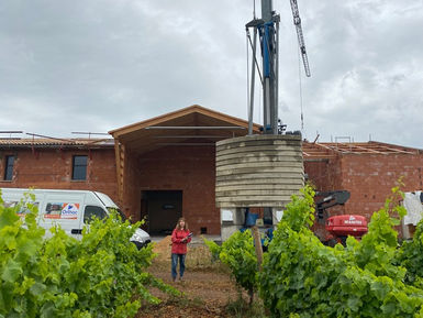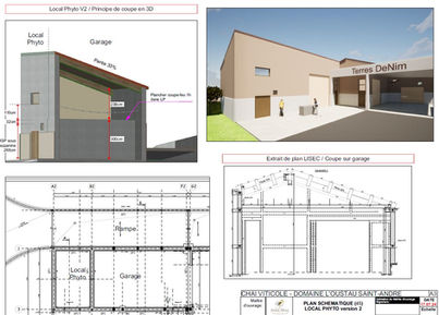 Le programme : - Création d'un chai à barriques, chai d'élevage, - Hangar produit finis / 300m² -Démolition du bureau et construction de locaux sociaux - Création d'un espace de mise en bouteille avec accès poids lourd - Aire de lavage - Cuve des effluents enterrée -Accueil, exposition, vente et dégustation de vins. - Local AEP et TGBT - Cuverie béton - Un auvent de réception - Garage matériel + mezzanine - Local phytosanitaires - Zone conquêt - Rampe pour benner les raisins dans le conquêt - Dalles techniques pour process vin, froid, etc..